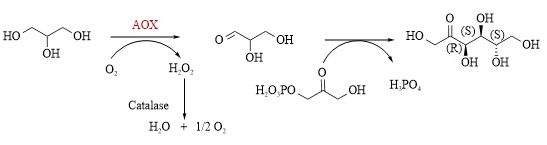 【概要描述】醇氧化酶(Alcohol oxidase,AOX)是一类能够催化醇类底物上的羟基氧化为羰基生成相应醛酮类化合物的氧化酶,不需要额外添加辅因子,仅需要氧气作为电子受体。这方面不同于醇脱氢酶,醇脱氢酶是利用辅因子NAD(P)H来可逆地生成羰基化合物。醇氧化酶的反应式如图1所示。