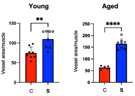 为了测试亚精胺对小鼠血管生长的影响,研究人员将亚精胺放入年轻(10周)和年老(80周)小鼠的饮用水中。通过切断下肢的血液供应来诱导血管生长。作为亚精胺补充的结果,年轻小鼠,尤其是老年小鼠的肌肉血管密度增加明显。